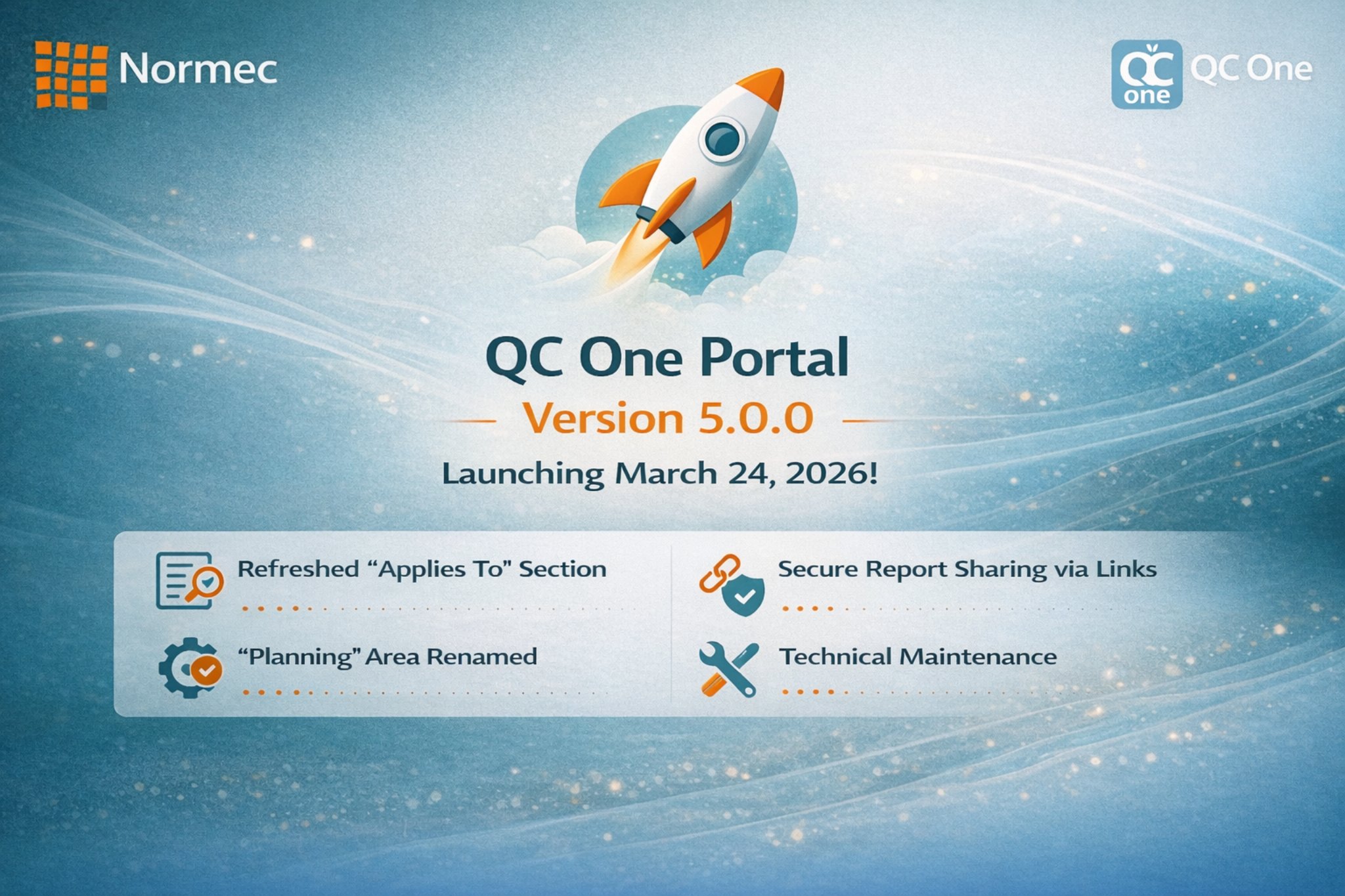 More info: 🚀QC One Portal 5.0.0QC One Portal Release 4.22 is planned to be released on Tuesday, March 3 2026.