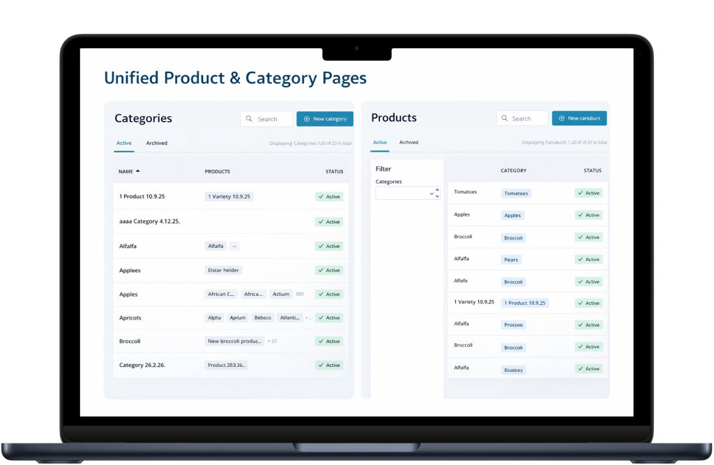- Consistent Layout: These pages now use the same layout, filters, and navigation as the specification version overview, making it easier to find, filter, and manage your products and categories.